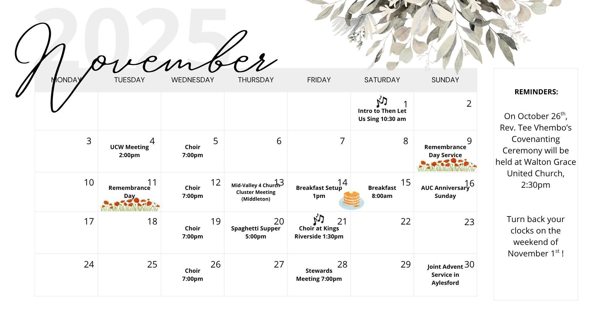 - AUC Anniversary Service - Sunday, November 16, 10:30, followed by cake!