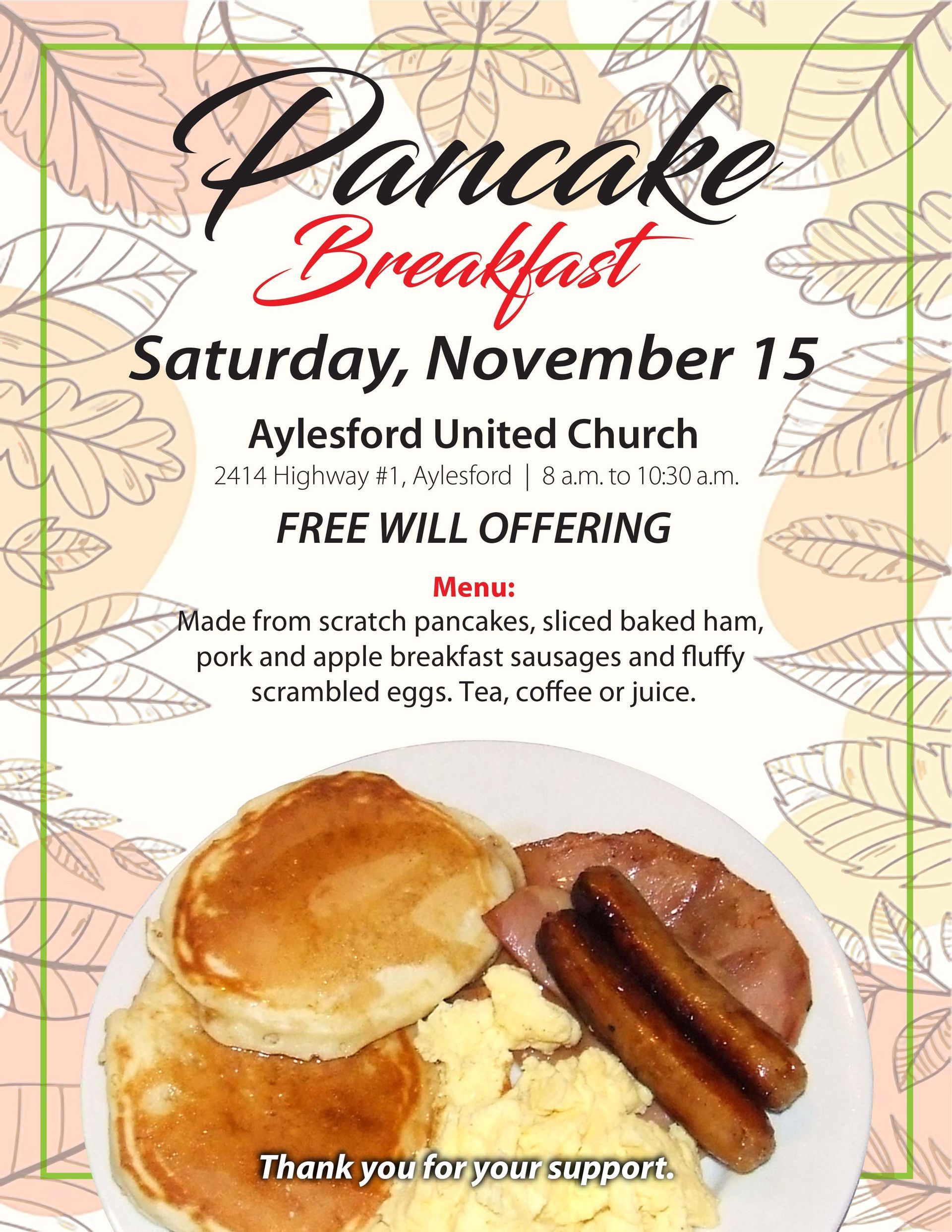 - Pancake Breakfast - Saturday, November 15, 8:00-10:30 - free will admission, all are welcome.